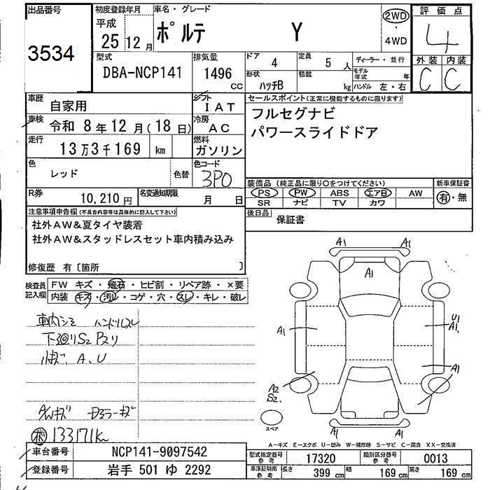 TOYOTA PORTE Y - лот 3534