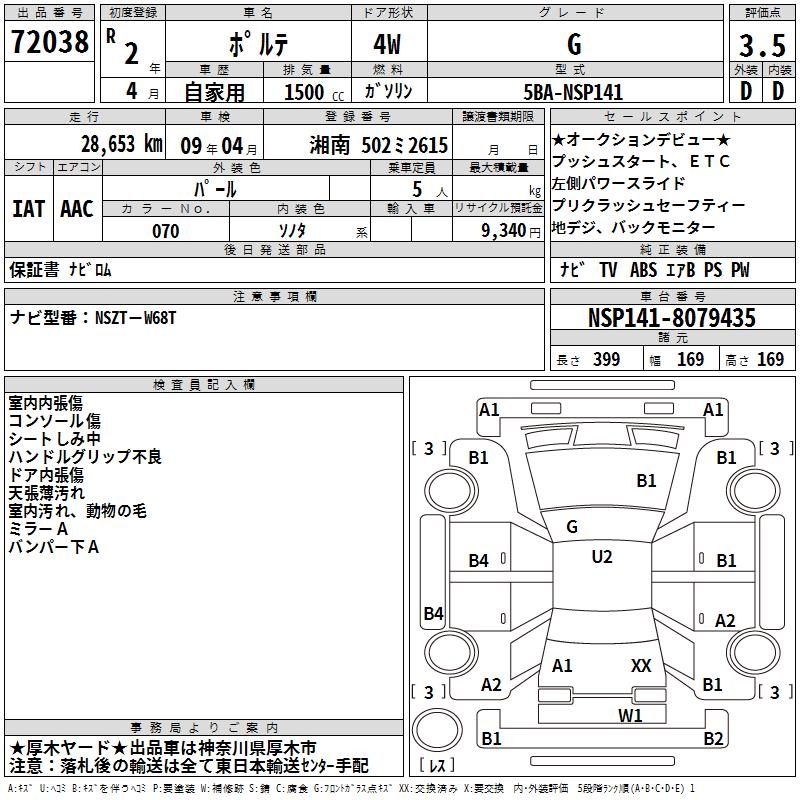 TOYOTA PORTE G - лот 72038