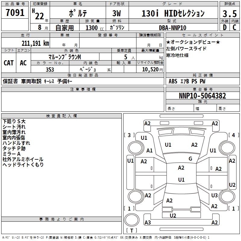 TOYOTA PORTE 130I HID SELECTION - лот 7091
