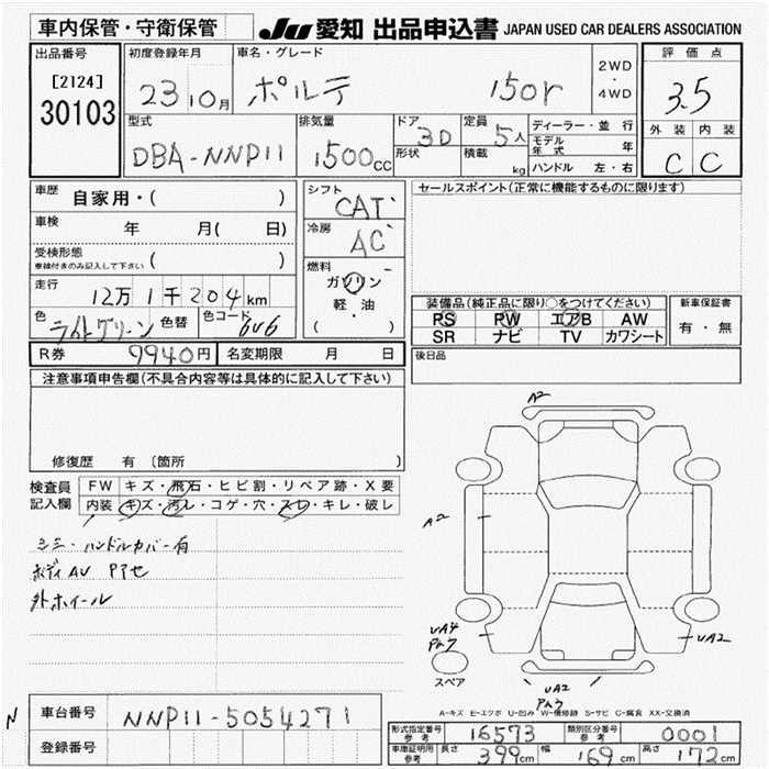 TOYOTA PORTE 150r - лот 30103