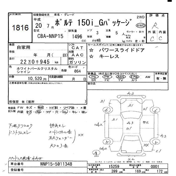 TOYOTA PORTE 4WD 150I G PACKAGE - лот 1816