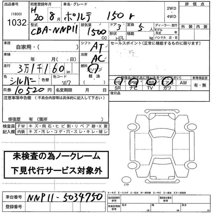 TOYOTA PORTE 150r - лот 1032
