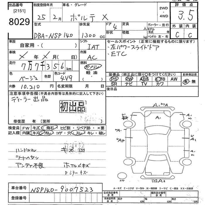 TOYOTA PORTE X - лот 8029