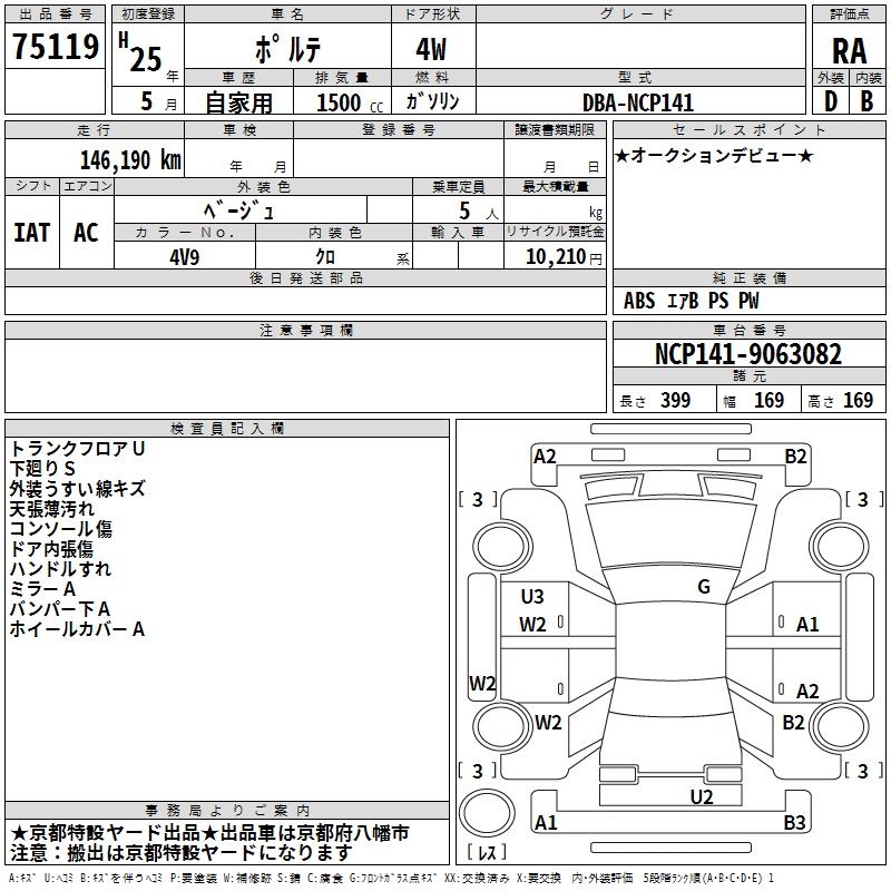 TOYOTA PORTE - лот 75119