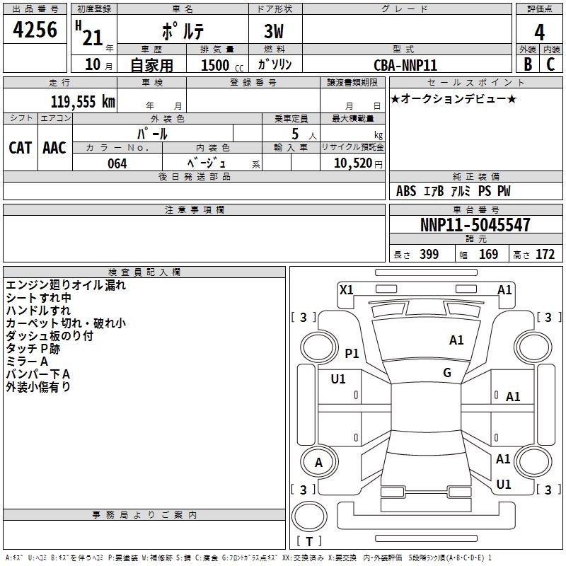 TOYOTA PORTE - лот 4256