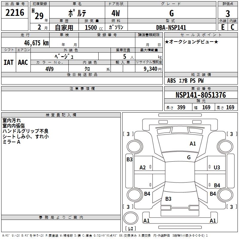 TOYOTA PORTE G - лот 2216