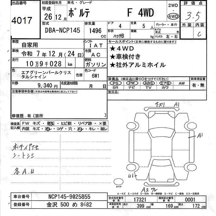 TOYOTA PORTE 4WD F - лот 4017