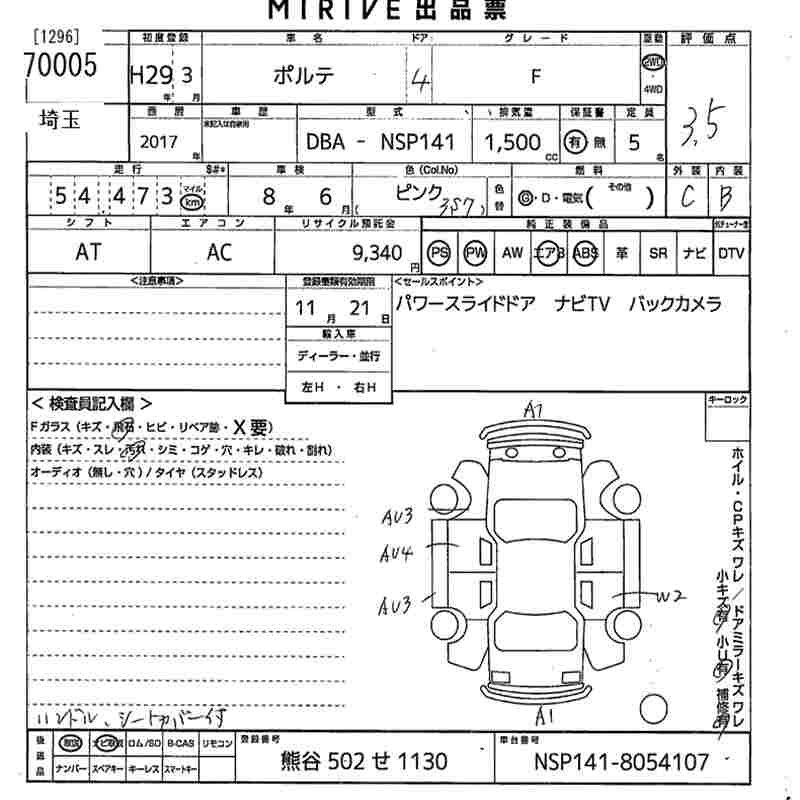 TOYOTA PORTE F - лот 70005