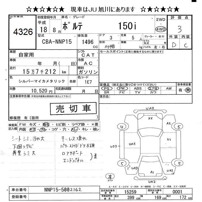 TOYOTA PORTE 4WD 150i - лот 4326