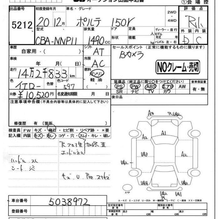 TOYOTA PORTE 150r - лот 5212