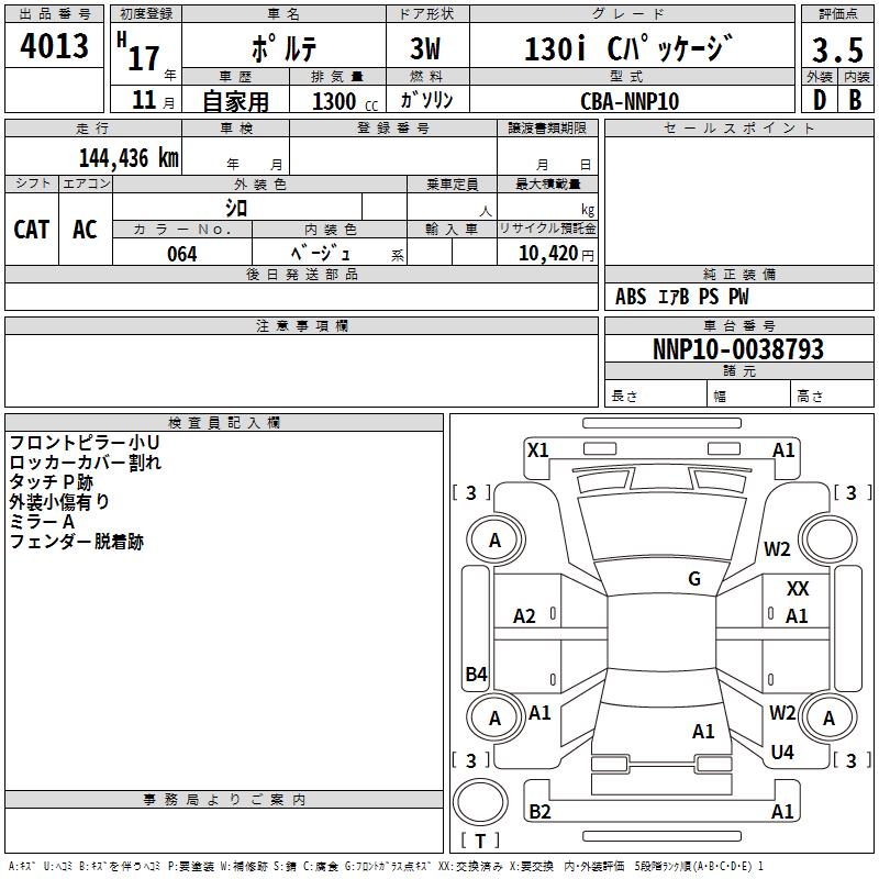 TOYOTA PORTE 130I C PACKAGE - лот 4013
