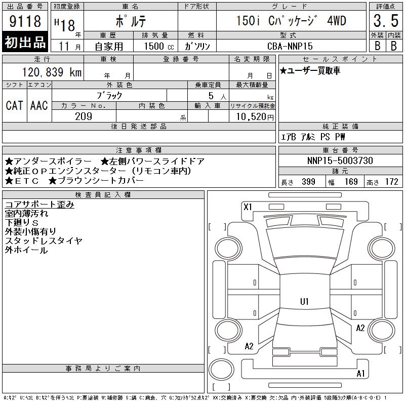 TOYOTA PORTE - лот 9118
