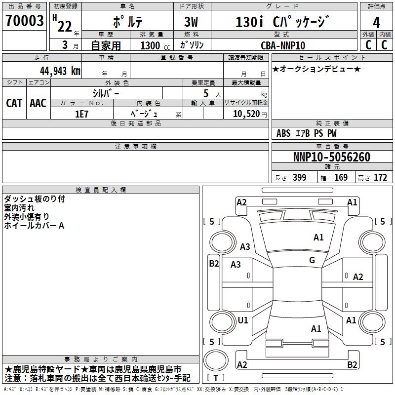 TOYOTA PORTE 130I C PACKAGE - лот 70003
