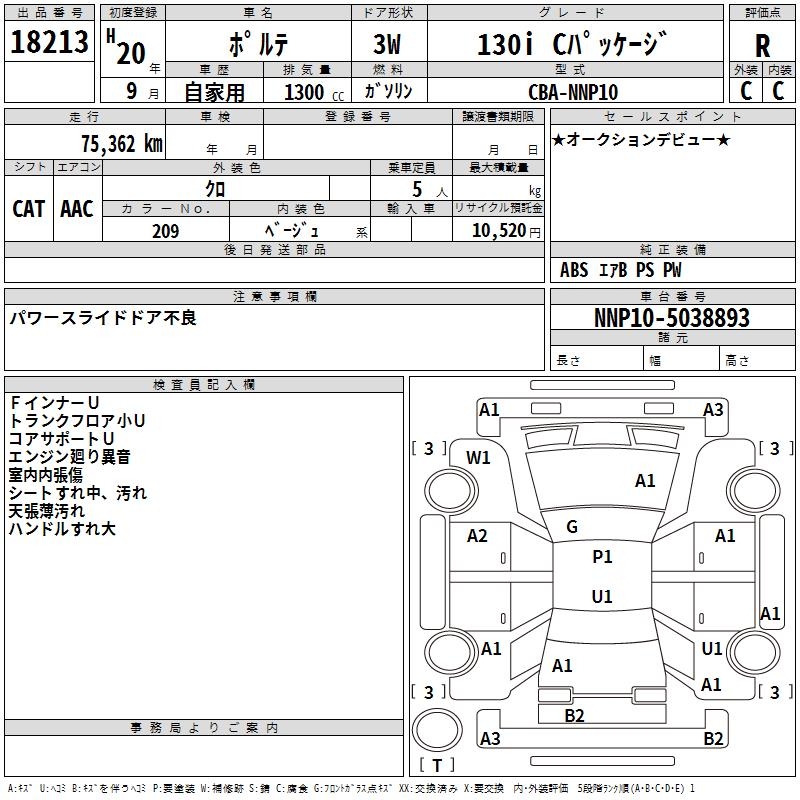 TOYOTA PORTE 130I C PACKAGE - лот 18213