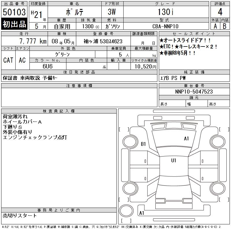 TOYOTA PORTE 130i - лот 50103