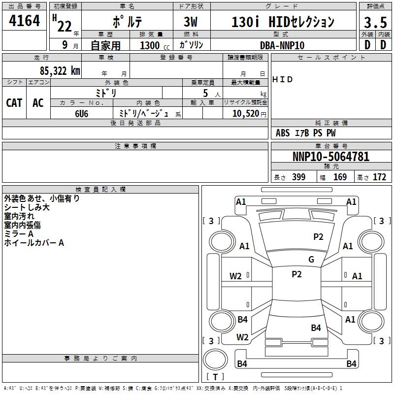 TOYOTA PORTE 130I HID SELECTION - лот 4164
