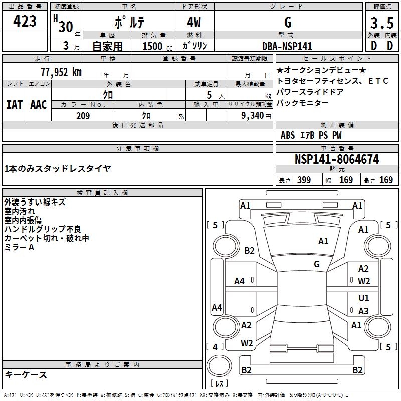 TOYOTA PORTE G - лот 423