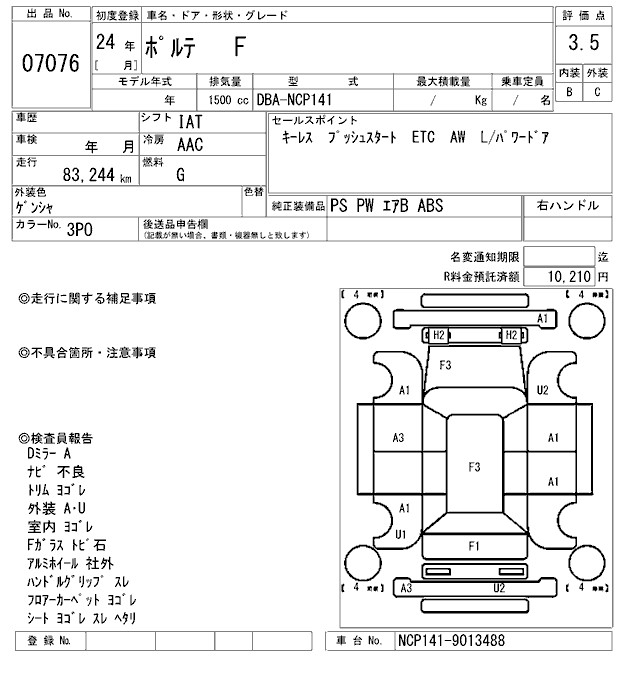 TOYOTA PORTE F - лот 7076