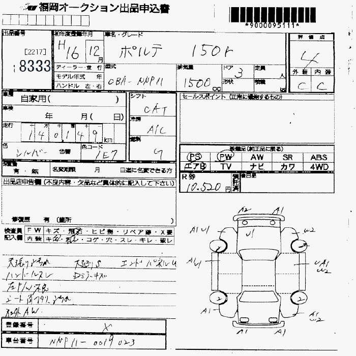 TOYOTA PORTE 150r - лот 8333