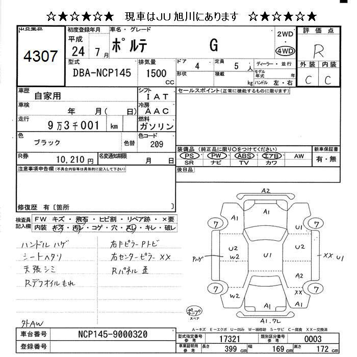 TOYOTA PORTE 4WD G - лот 4307