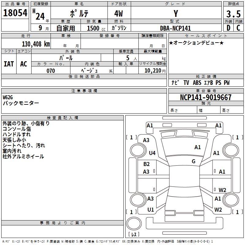 TOYOTA PORTE Y - лот 18054