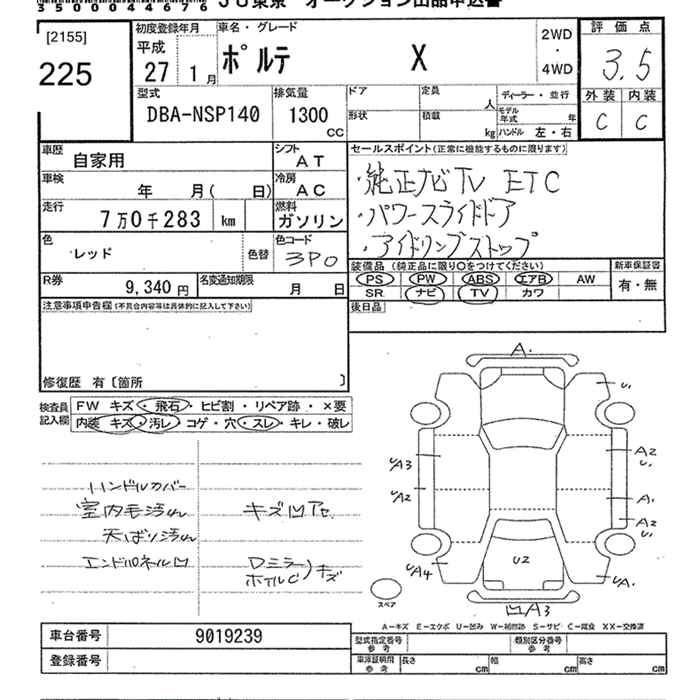 TOYOTA PORTE X - лот 225
