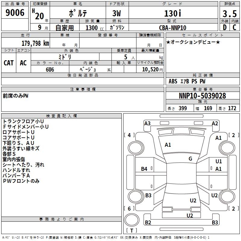 TOYOTA PORTE 130i - лот 9006