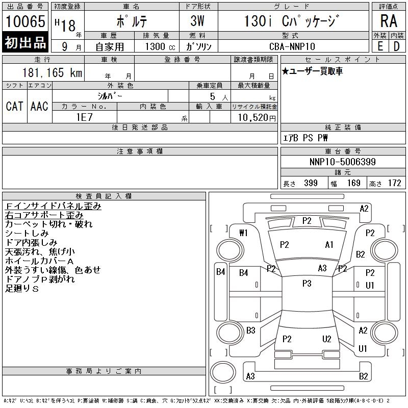 TOYOTA PORTE 130I C PACKAGE - лот 10065