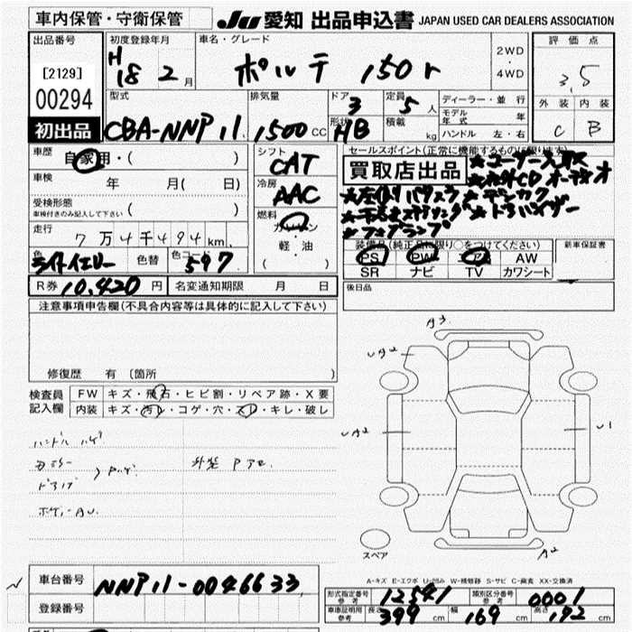 TOYOTA PORTE 150r - лот 294