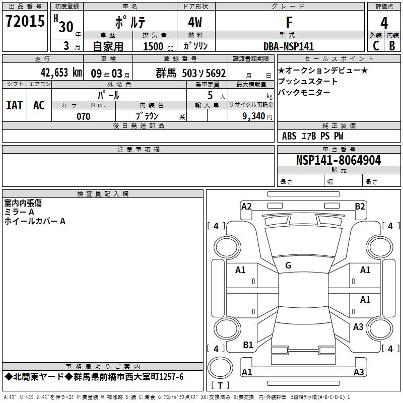 TOYOTA PORTE F - лот 72015