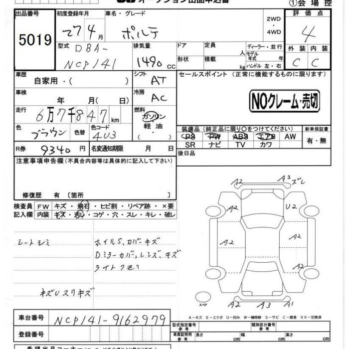 TOYOTA PORTE - лот 5019