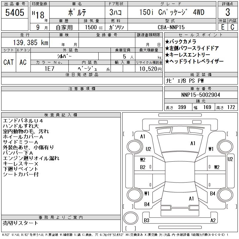 TOYOTA PORTE 150I C PACKAGE 4WD - лот 5405