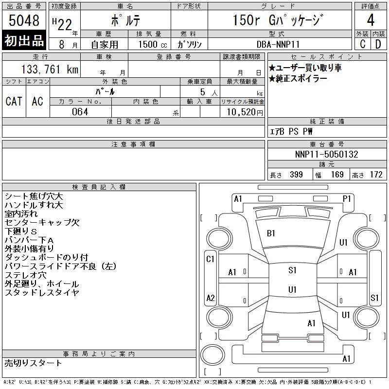 TOYOTA PORTE 150R G PACKAGE - лот 5048