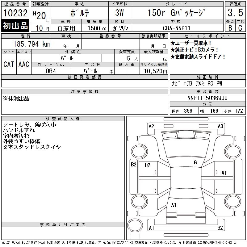 TOYOTA PORTE 150R G PACKAGE - лот 10232