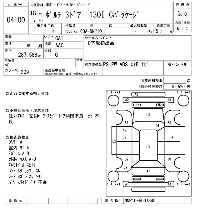 TOYOTA PORTE 130I C PACKAGE - лот 4100