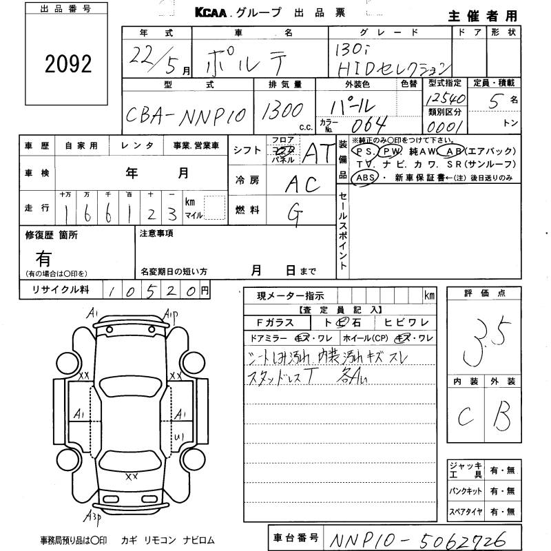 TOYOTA PORTE 130I HID SELECTION - лот 2092