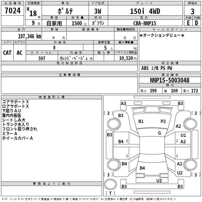 TOYOTA PORTE 150i 4WD - лот 7024