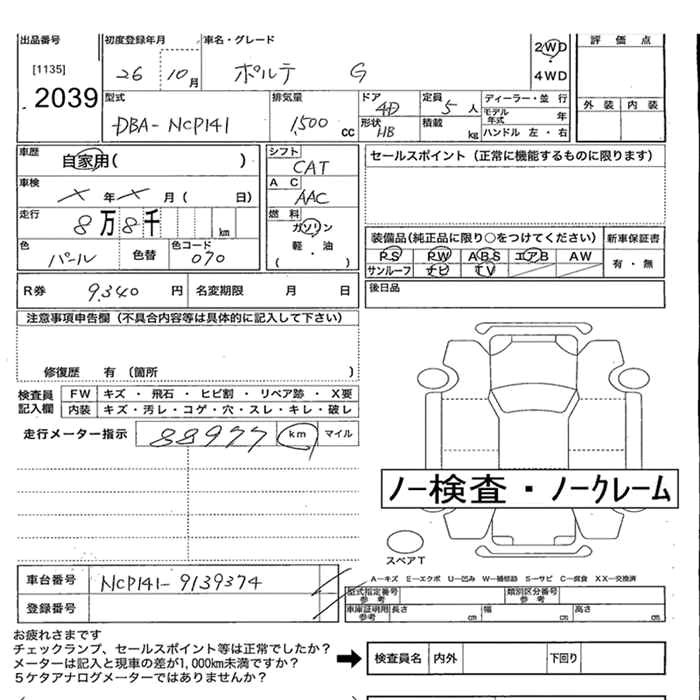 TOYOTA PORTE G - лот 2039