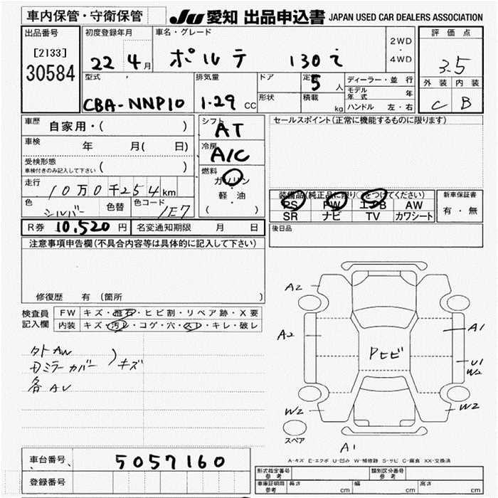 TOYOTA PORTE 130i - лот 30584