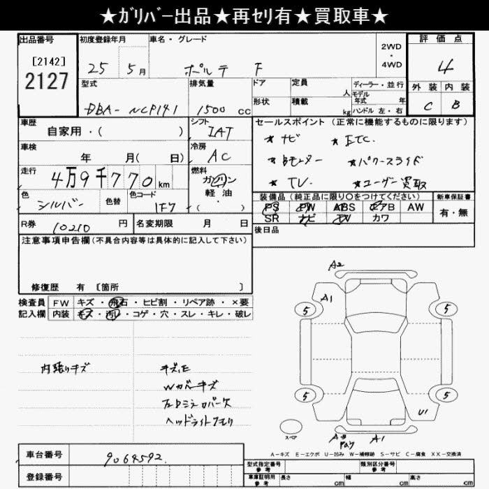 TOYOTA PORTE - лот 2127