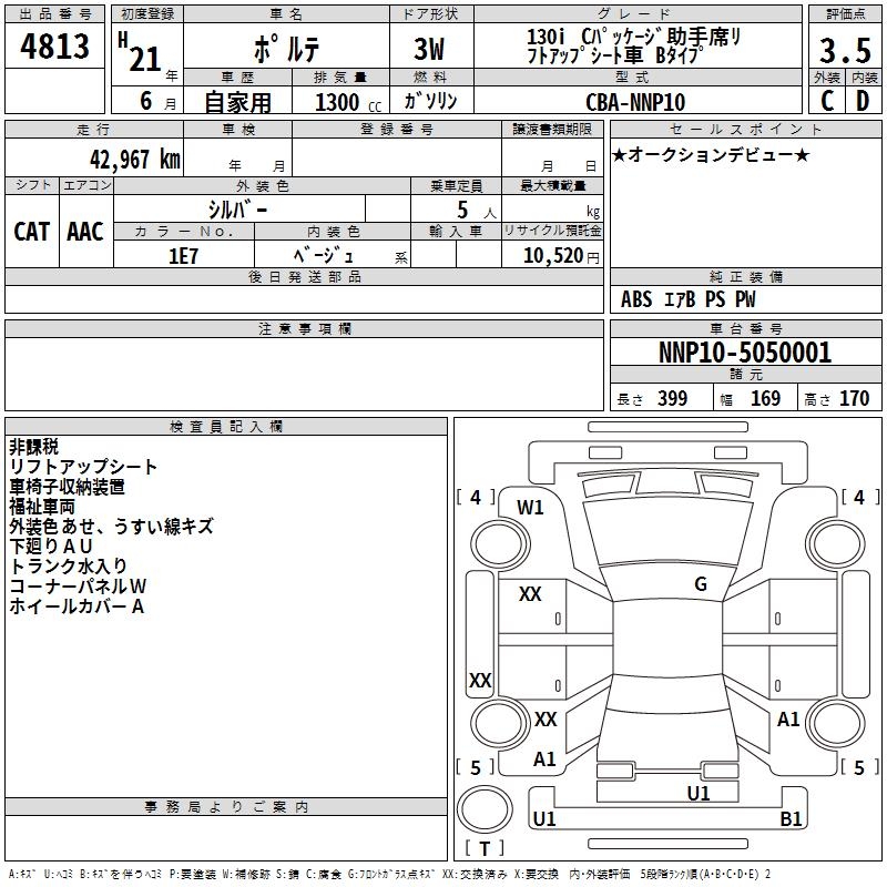 TOYOTA PORTE - лот 4813