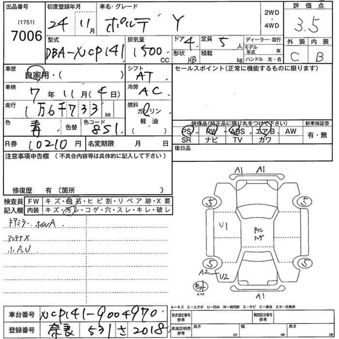 TOYOTA PORTE - лот 7006