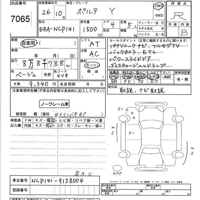 TOYOTA PORTE - лот 7065