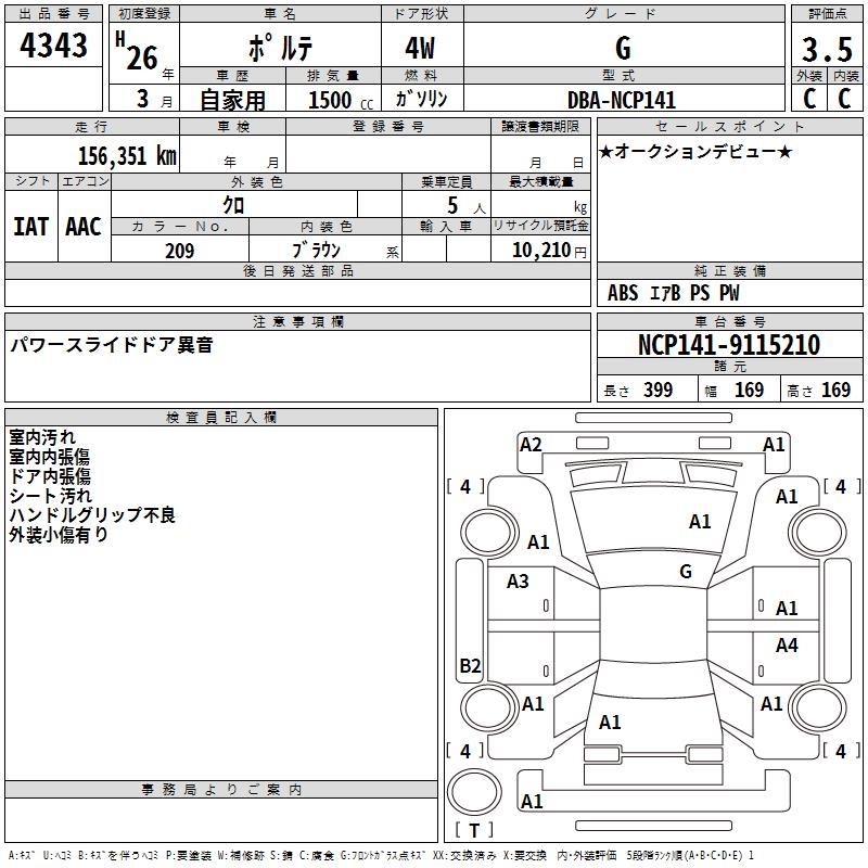 TOYOTA PORTE - лот 4343