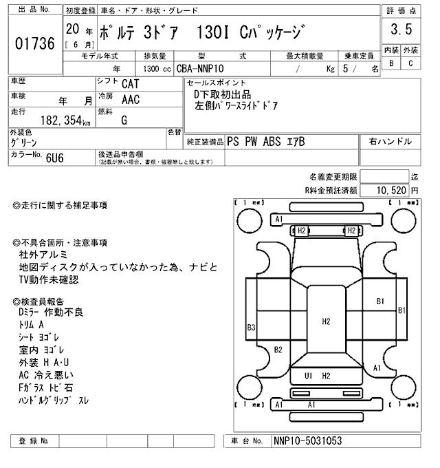 TOYOTA PORTE - лот 1736