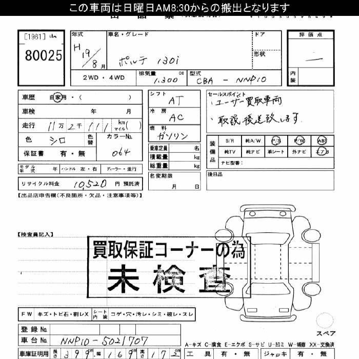 TOYOTA PORTE - лот 80025