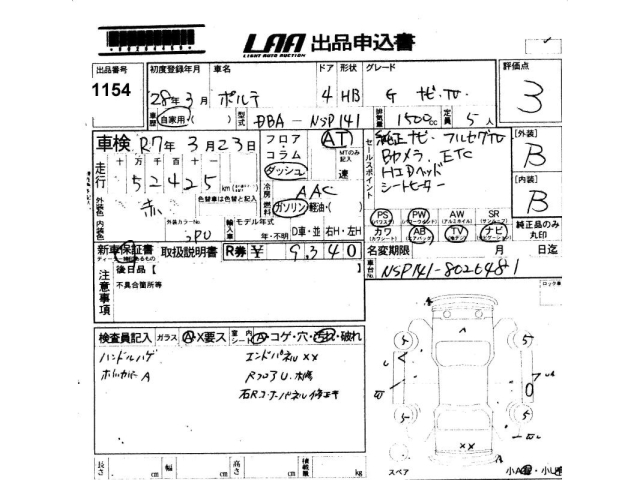 TOYOTA PORTE - лот 1154