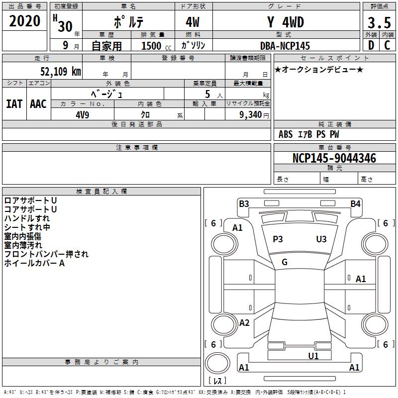 TOYOTA PORTE - лот 2020