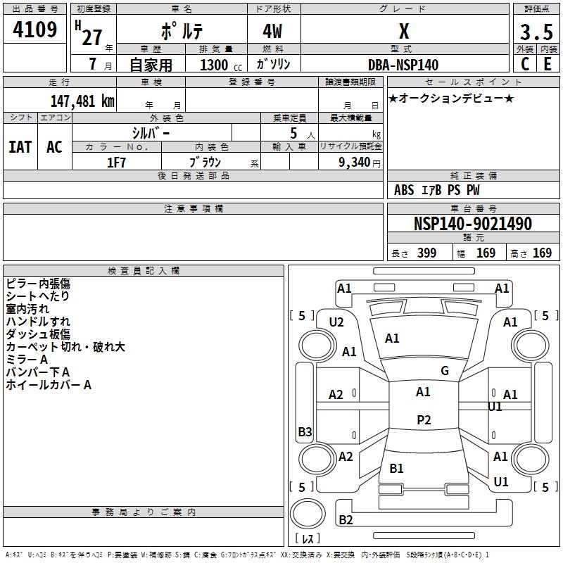 TOYOTA PORTE - лот 4109