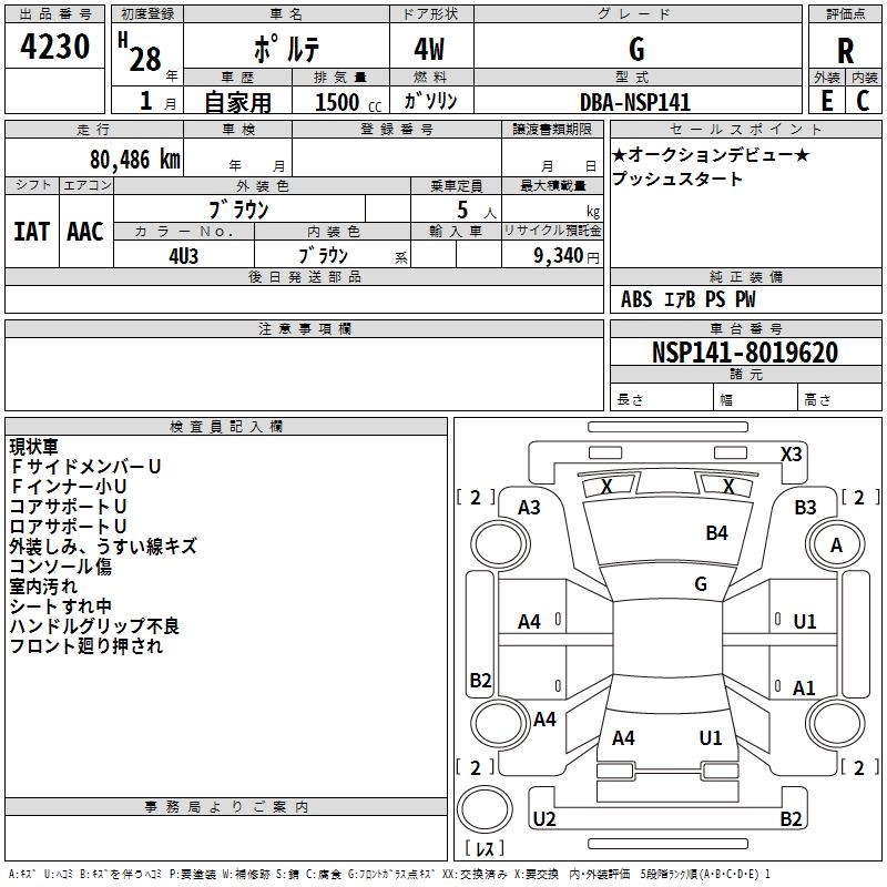 TOYOTA PORTE - лот 4230